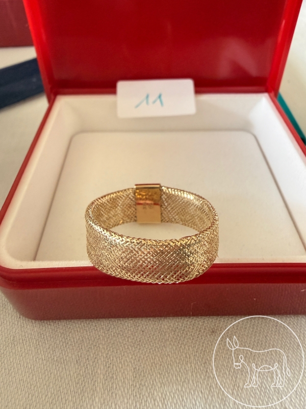 punzierter Ring aus dünnen 375 Goldfäden gestrickt, elastisch, RW23mm