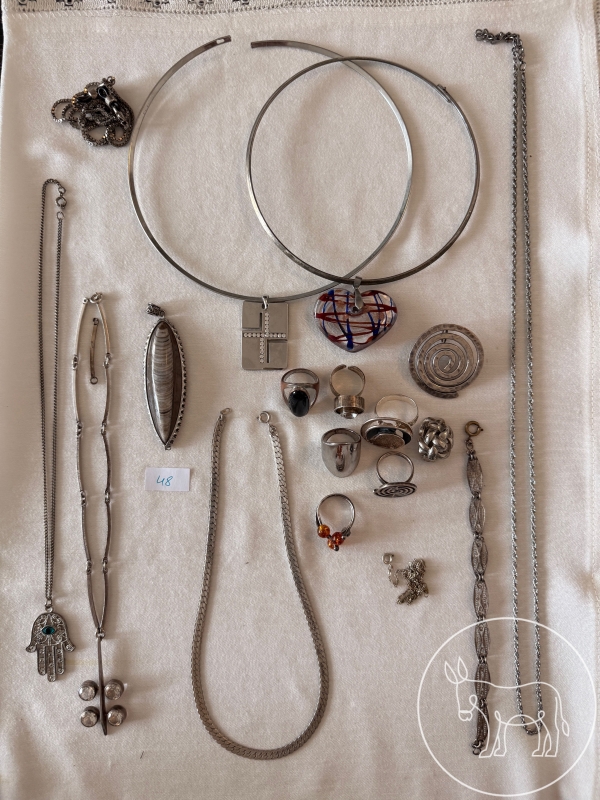 teilweise echt, teilweise Modeschmuck. Halsketten, Halsreifen, Ringe, Anhänger, Armkette, etc.