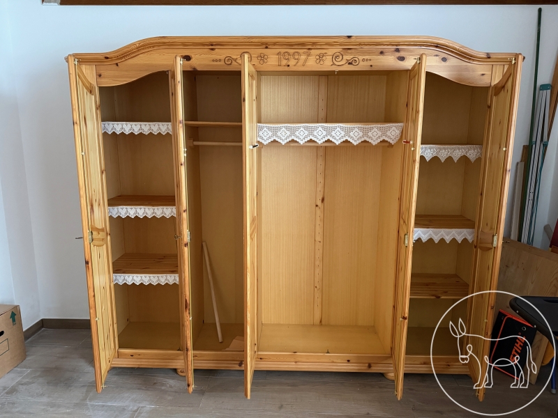 bäuerliches Design, Vollholz. Mit Fächjern zum Legen und Fächern zum Hängen. Maß: 260x60x205cm. (kann ebenerdig abtransportiert werden).