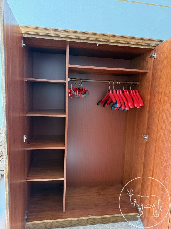 Kleiderschrank mit 2 Türen, Stange zum Hängen und 5 Fächer zum Legen. 120x57x184cm