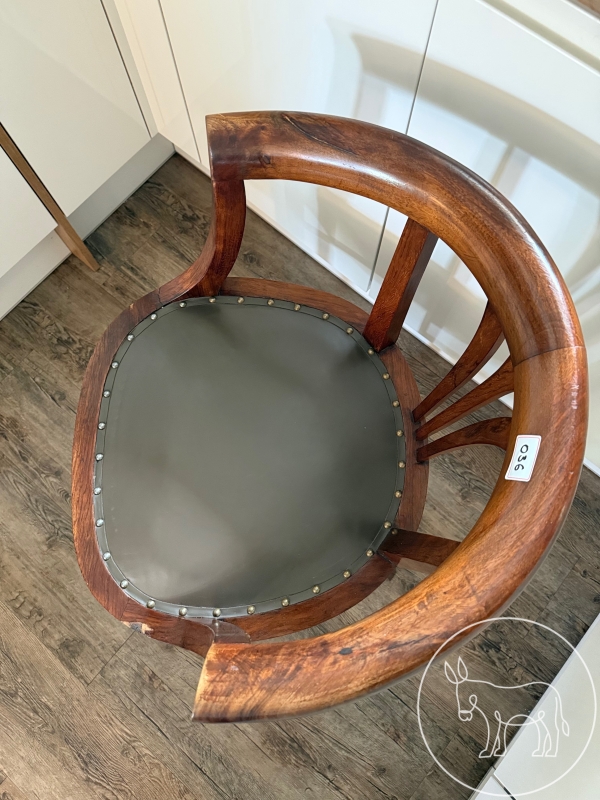 massiver gepolsterter Holzsessel. Mit Ledersitzfläche und runder Lehne.56x49x79cm Sitzhöhe 46cm