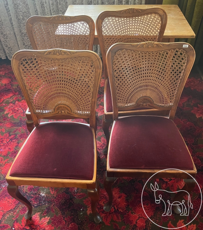 aus Holz mit rotem Stoffüberzug und geflechteter Anlehne, 4 Stück, 48,5x44x85,5cm, Sitzhöhe:48cm