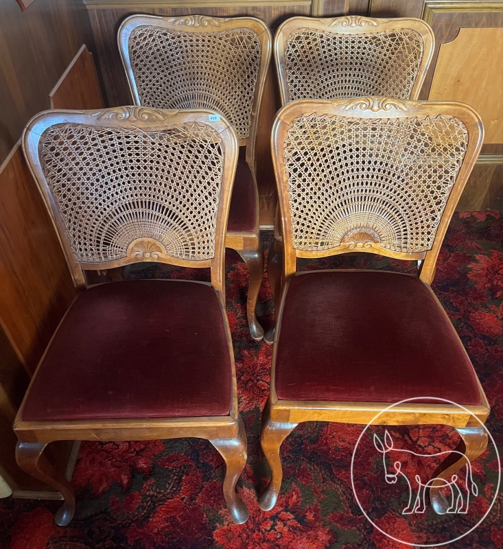 aus Holz mit rotem Stoffüberzug und geflechteter Anlehne, 4 Stück, 48,5x44x85,5cm, Sitzhöhe:48cm