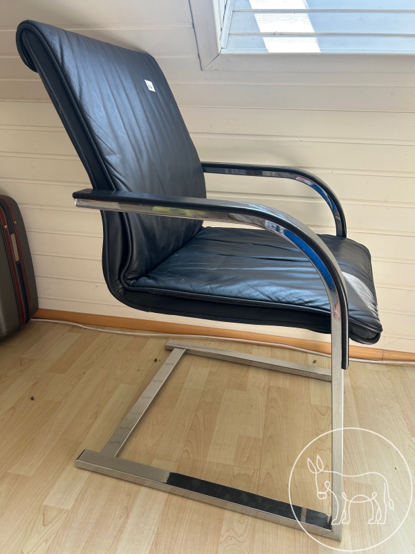 schwarzer Ledersessel, Schwungsessel, Maß: 60x58x92cm. Sitzhöhe 46cm.