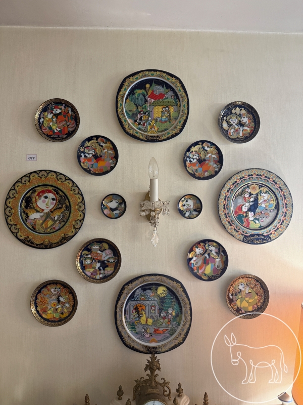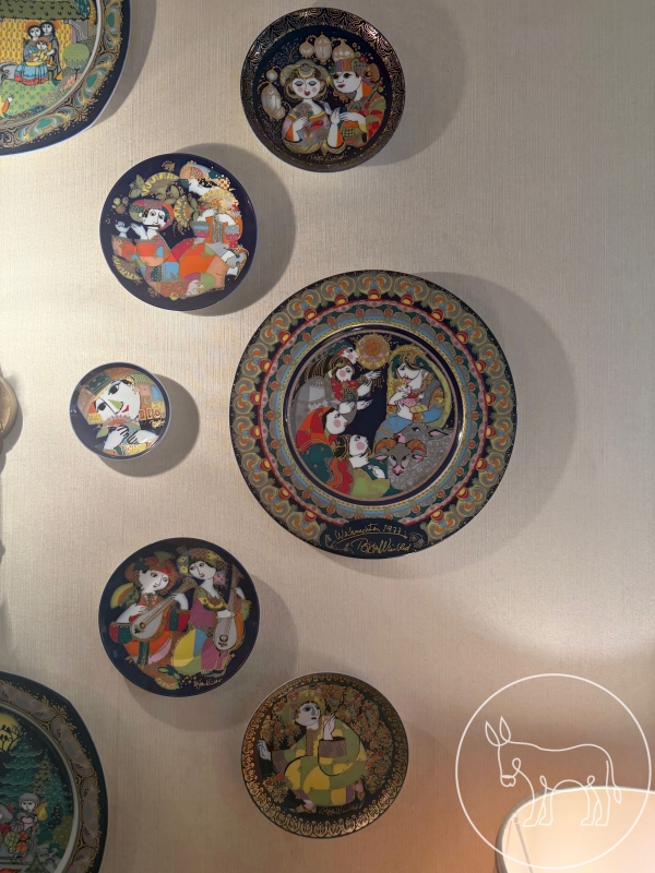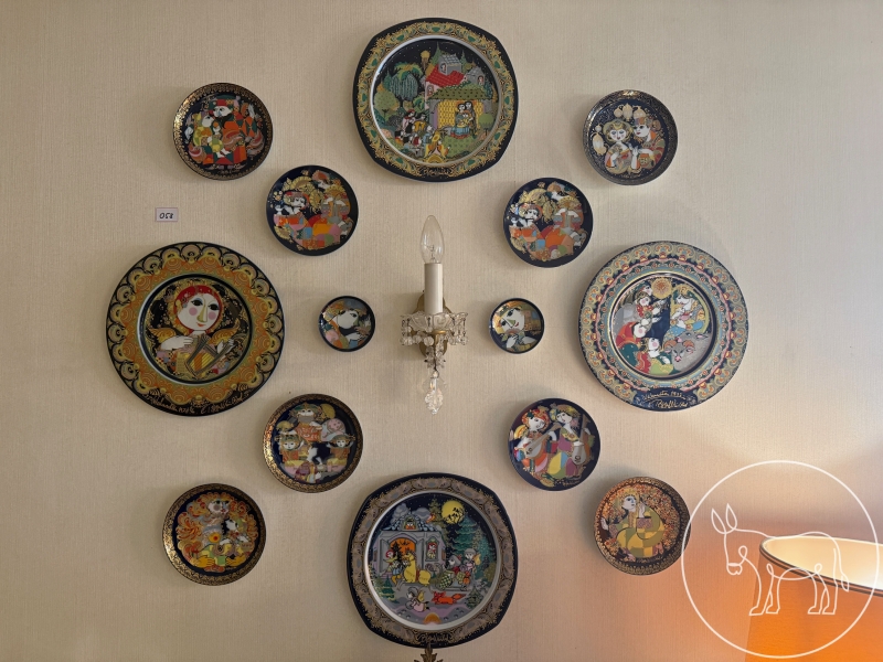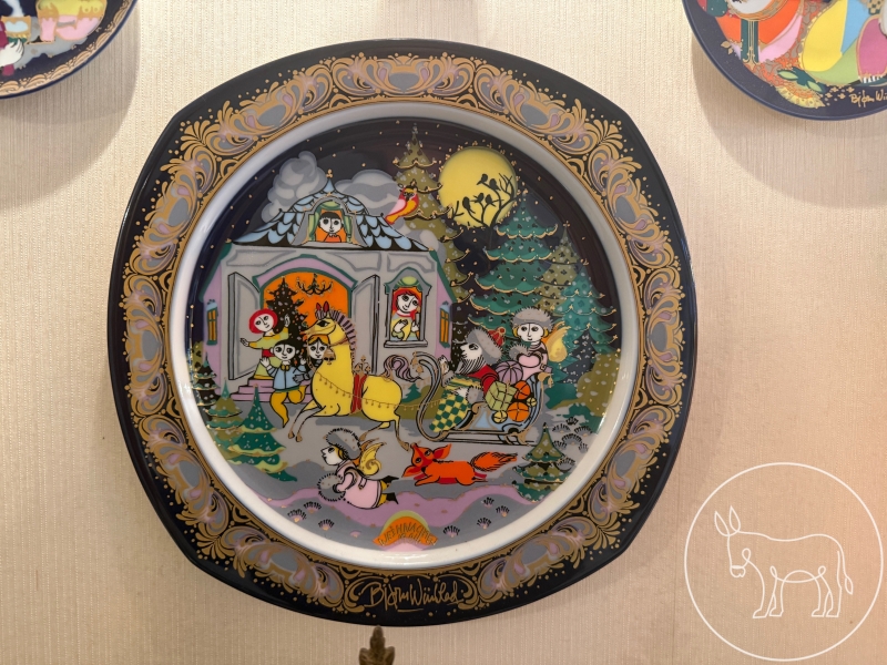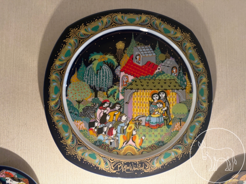 Weihnachtsteller und Teller aus der Sammlung Aladin und die Wunderlampe. Verschiedene Größen, Design Björn Wiinblad. Als kleine Beigabe: Alte kleine Kalender in denen das Geschirr beschrieben wird.