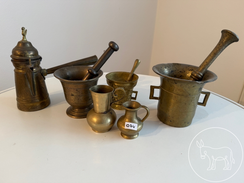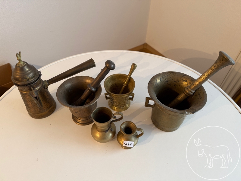 3 Mörser in unterschiedlichen Größen (groß: d14 h12cm), und diverse Kannen.