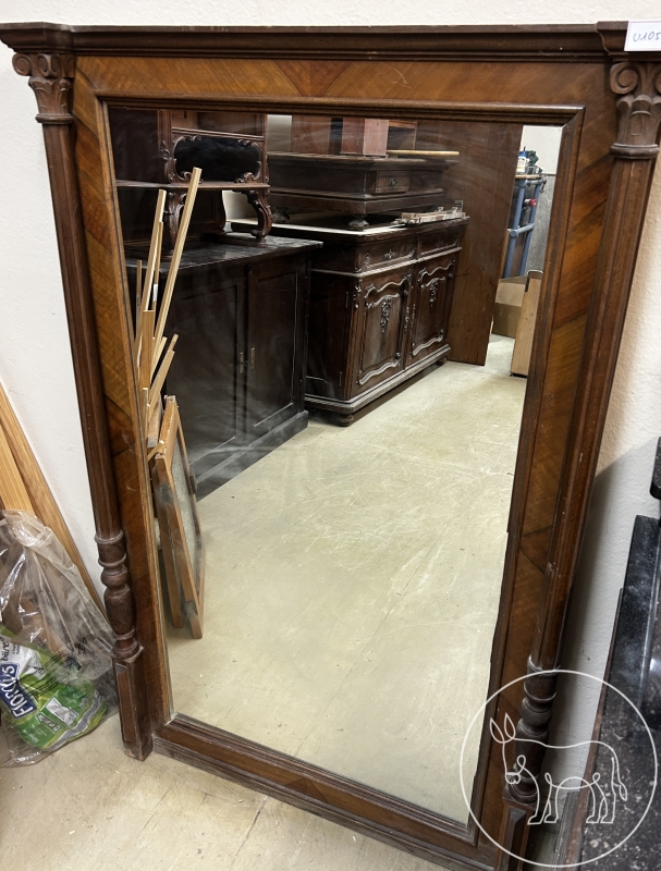 Maß: 96x134cm. Antiker Spiegel mit Holzrahmen und gedrechselten Seitenteilen