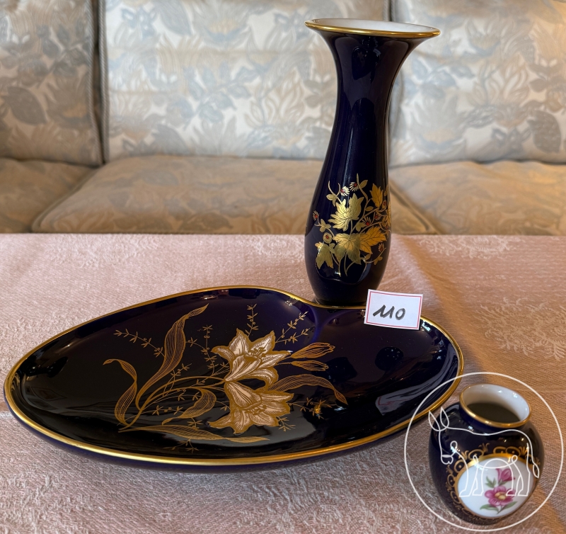 Konvolut aus 2 Vasen, einem kleinen Teller und einer nierenförmigen Schale. Maß der großen Vase: H21,5xD8,5cm