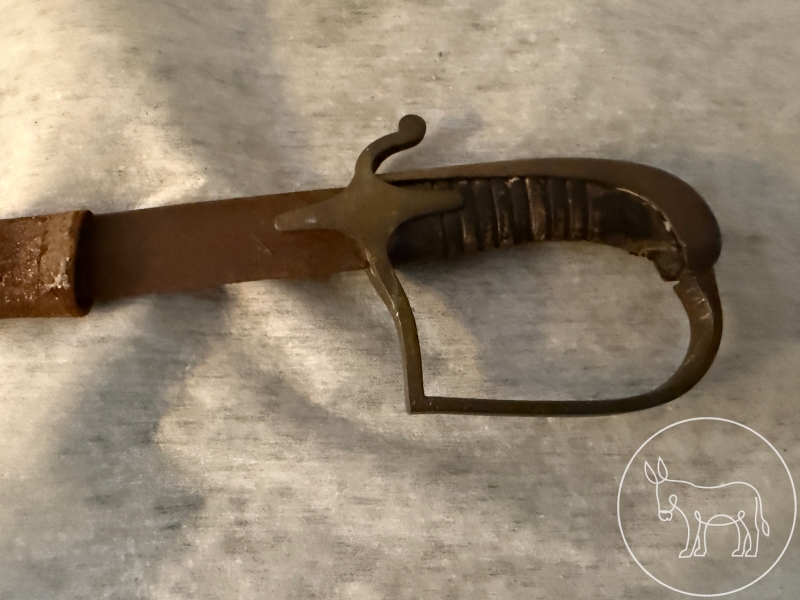 wahrscheinlich aus der zeit des amerikanischen Bürgerkrieges, möglicherweise von einem Fußsoldaten getragen. Hieb- und Stichwaffe mit gebogener Klinge. Länge 90cm