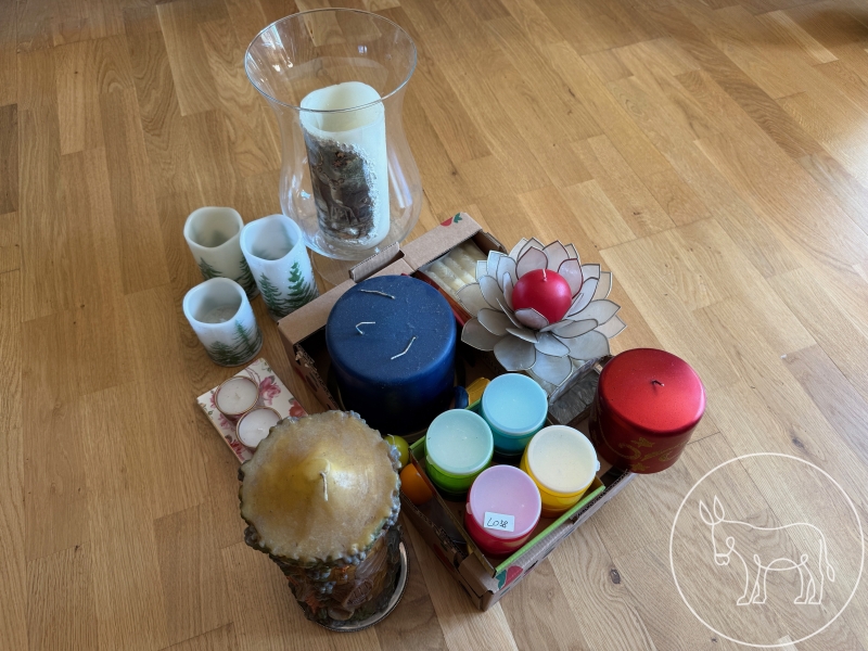 unterschiedlichste Farben, teilweise echte Kerzen, teilweise e-Kerzen,