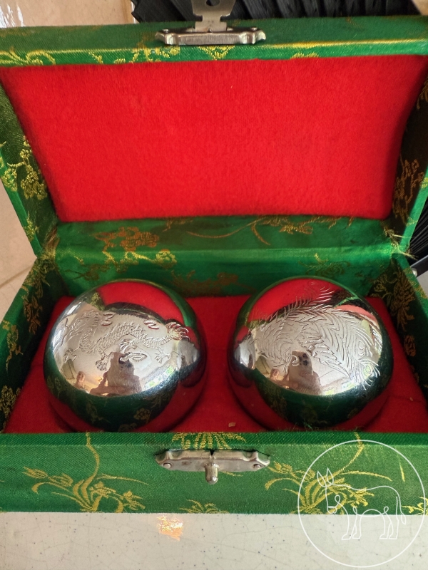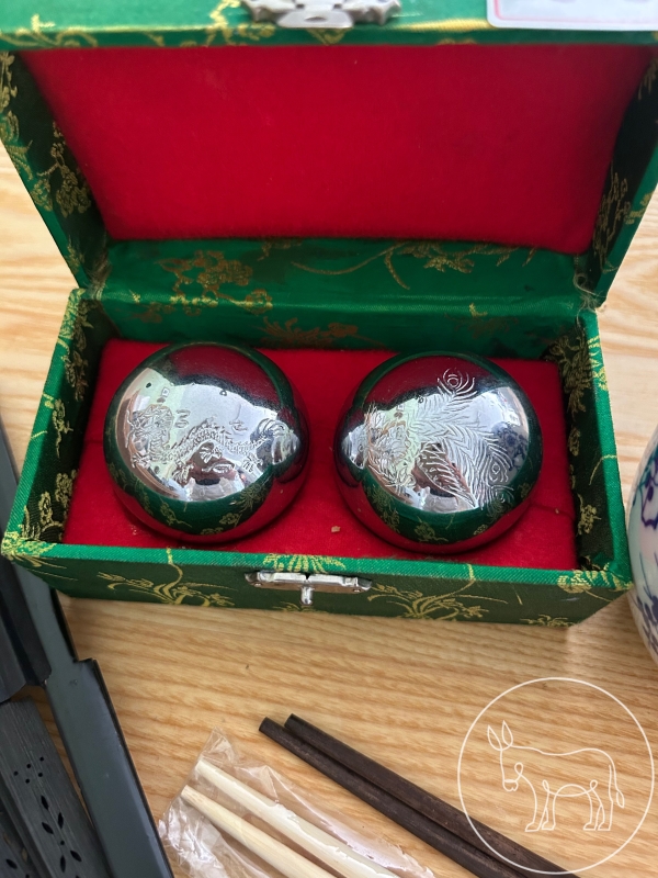 Klangkugeln, Fächer, Stäbchen, 2 Schüsseln, 2 Löfel, etc.