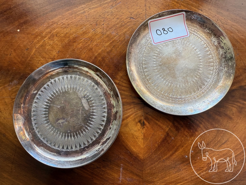 6 Stk. Kleine Unteretzer (9,5cm), 1 größerer Untersetzer (10,5cm).
