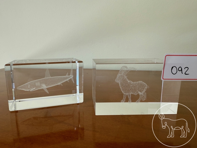 Steinbock und Haifisch in Glaskubus. 8x5x5cm