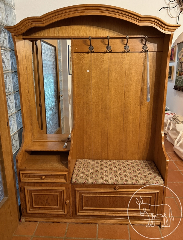 145x40x190cm. Mit Sitzbank, Schuhschrank, Kästchen, Schublade und Spiegel.