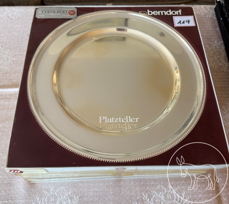 6 Berndorf Platzteller versilbert, D 28,5cm.