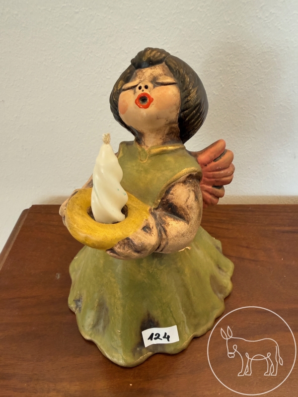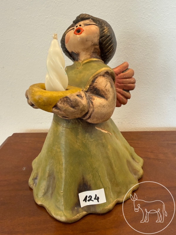 Bozener Engel von Thun, mit Kerze, Keramikfigur aus Bozen, Südtirol, handbemalt. Merkmal: runde Form, gedeckte Farben, freundlicher Gesichtsausdruck. D 15cm, H20cm.