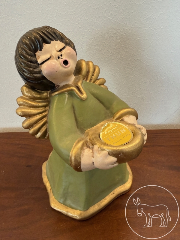 Bozener Engel von Thun, ohne Kerze, Keramikfigur aus Bozen, Südtirol, handbemalt. Merkmal: runde Form, gedeckte Farben, freundlicher Gesichtsausdruck. D 15cm, H20cm.