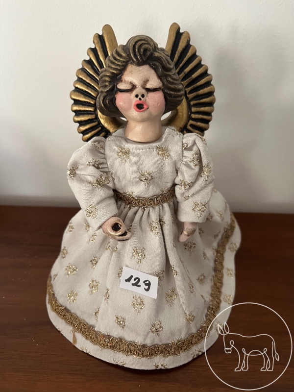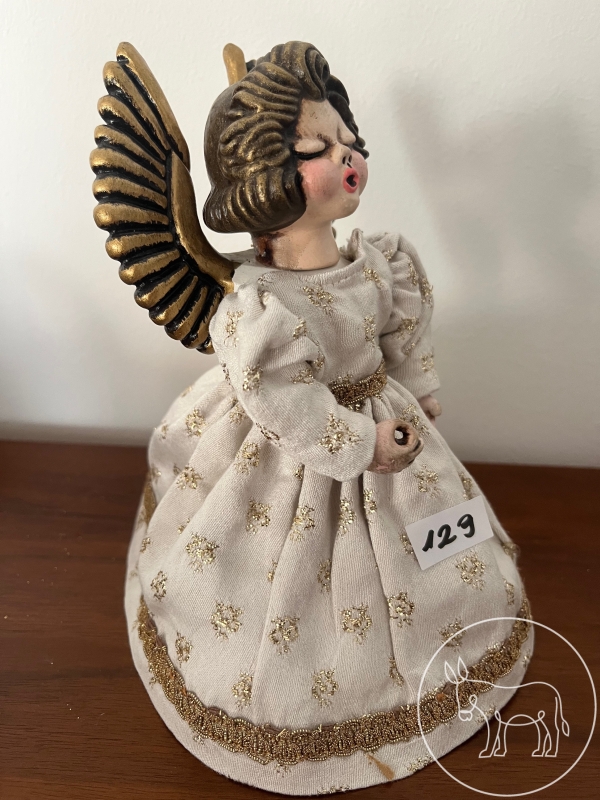 Bozener Engel von Thun, ohne Kerze, handgefertigte Keramikfigur aus Bozen, Südtirol, handbemalt mit Stoffkleidung. Merkmal: runde Form, gedeckte Farben, goldene Akzente, freundlicher Gesichtsausdruck. D 17cm, H17cm.