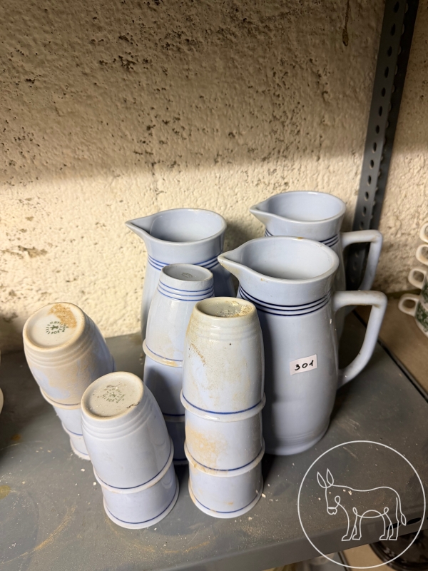 blau, 3 Kannen (D: 9cm, H: 80cm), 11 Tassen (D:7cm , H: 8cm )