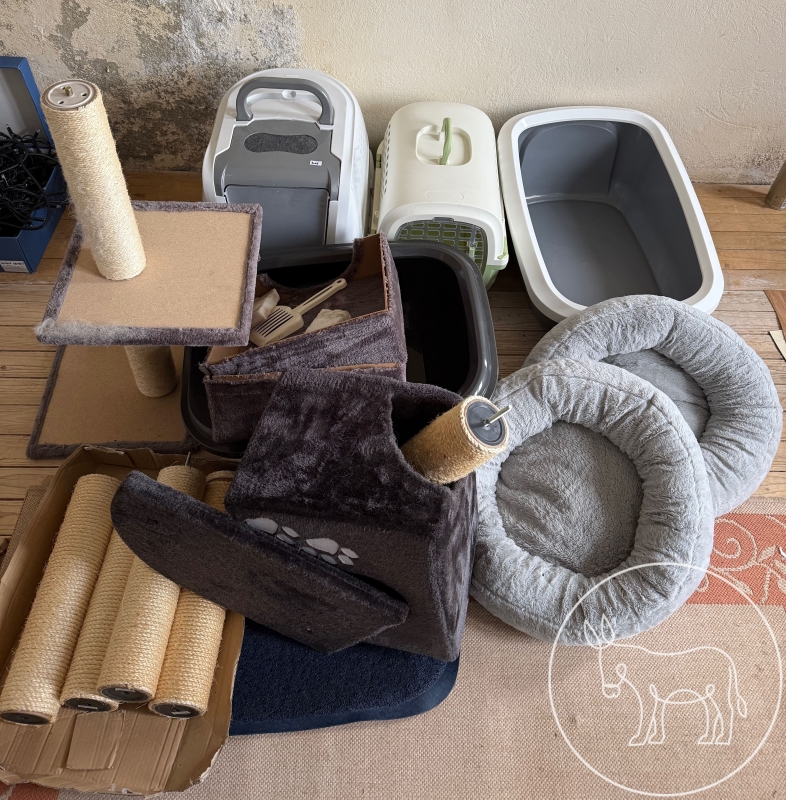 Konvolut aus Kratzbaum, Katzenkörbe, Katzenkisterl, etc.