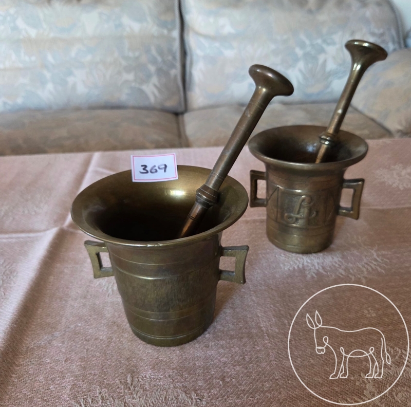 Durchmesser 13 bzw. 12cm, Höhe jeweils 11cm. Inkl. 2 Stößel