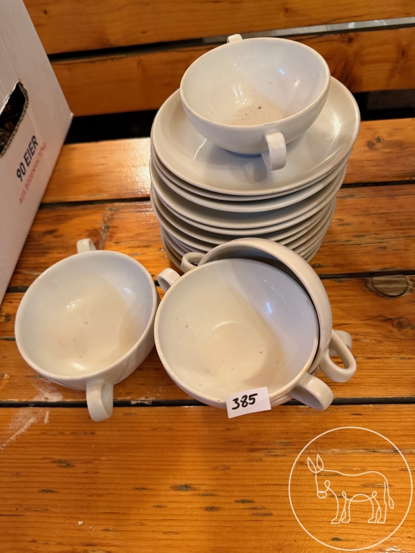 4 kleine Suppentassen, 1 große Suppentasse, 12 Unterteller