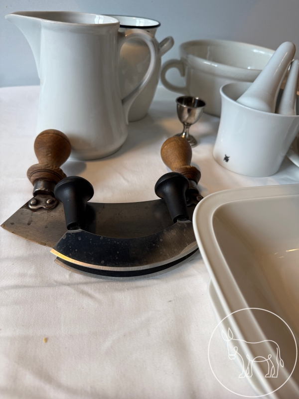 Mörser, Wiegemesser, Weidling, diverse Platten (teilweise von Rosenthal),etc.