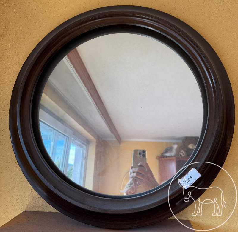 Runder Spiegel mit braunem Holzrahmen, D 64cm