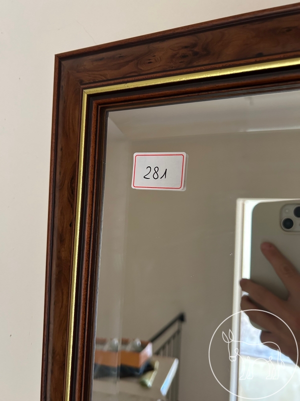 Holzspiegel mit geschliffenem Glas. Maß: 50x140cm.