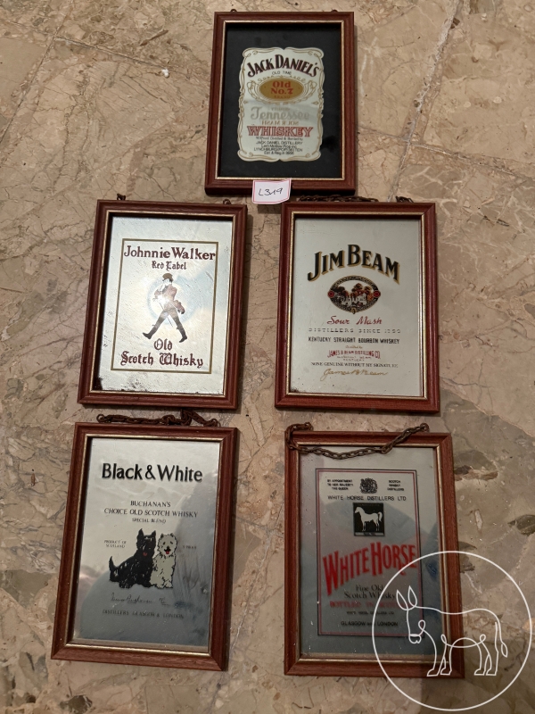 Jim Beam, jack Daniel's, Jonnie Walker, Scotch Whiskey, White Horse, jeweils 15x20cm