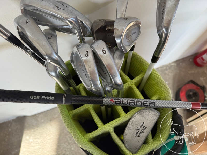 Golf-Bag mit vielen Schlägern und Hölzern, siehe Fotos