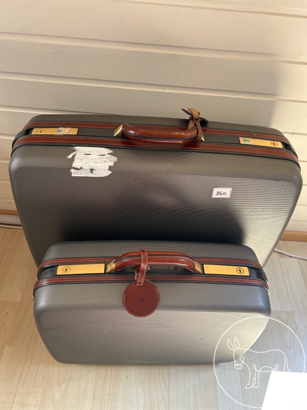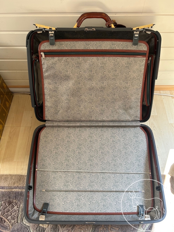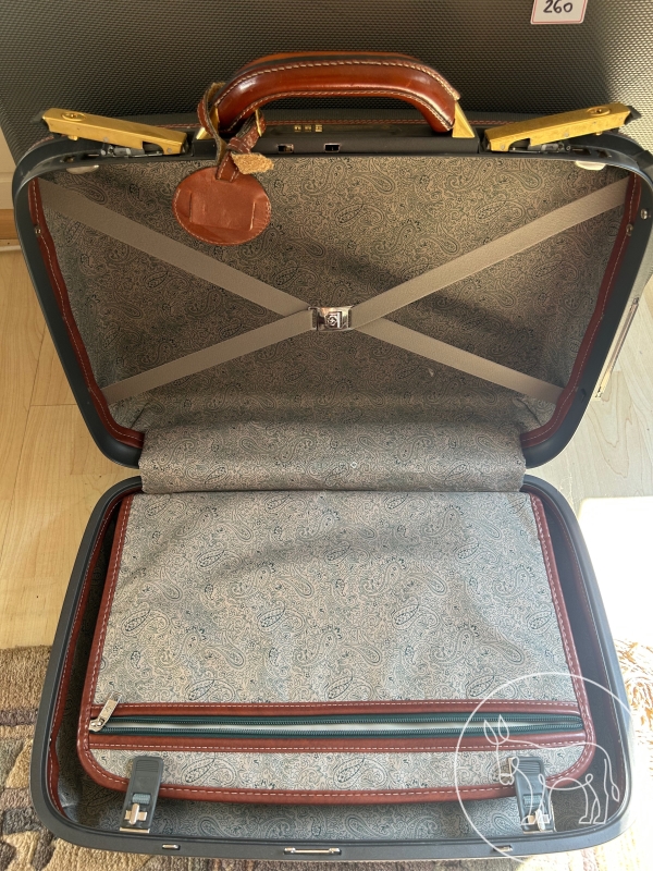 groß: 64x52x20cm klein: 50x35x17cm. Sehr gut erhalten, mit Stoff ausgekleidet, Paisley Trennfächer, mit verschiedenen Reißverschlusstaschen ausgestattet