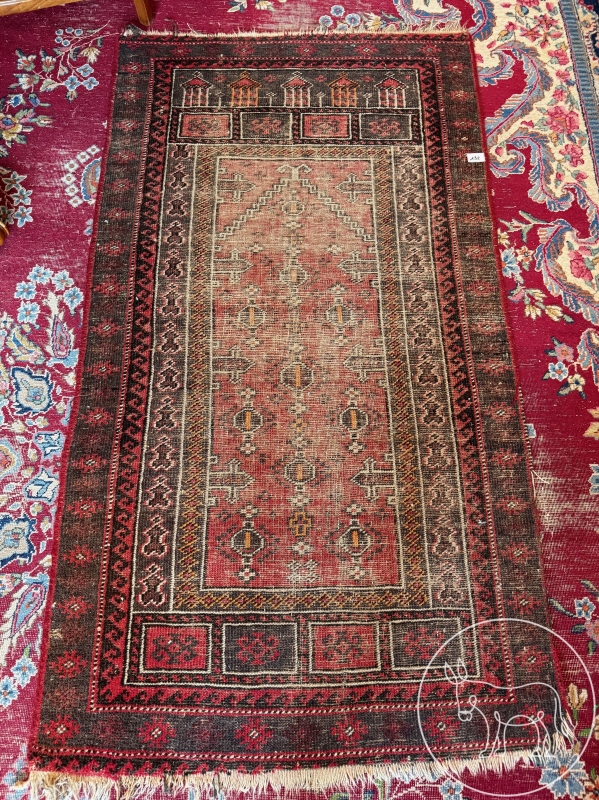 Gebetsteppich mit starken Gebrauchsspuren, Maß: 155x85cm