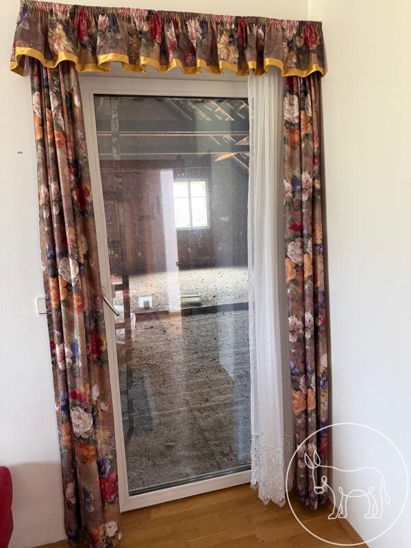 Türvorhang: 120x230cm, Fenstervorhang 182x150cm Seitenteile und Store.