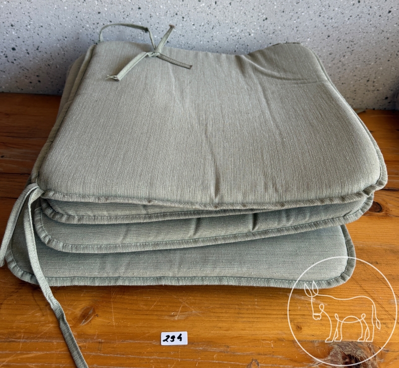 Sitzauflagen gepolsterst mit oliv grünem Bezug und Bändchen, ca. 35x35cm