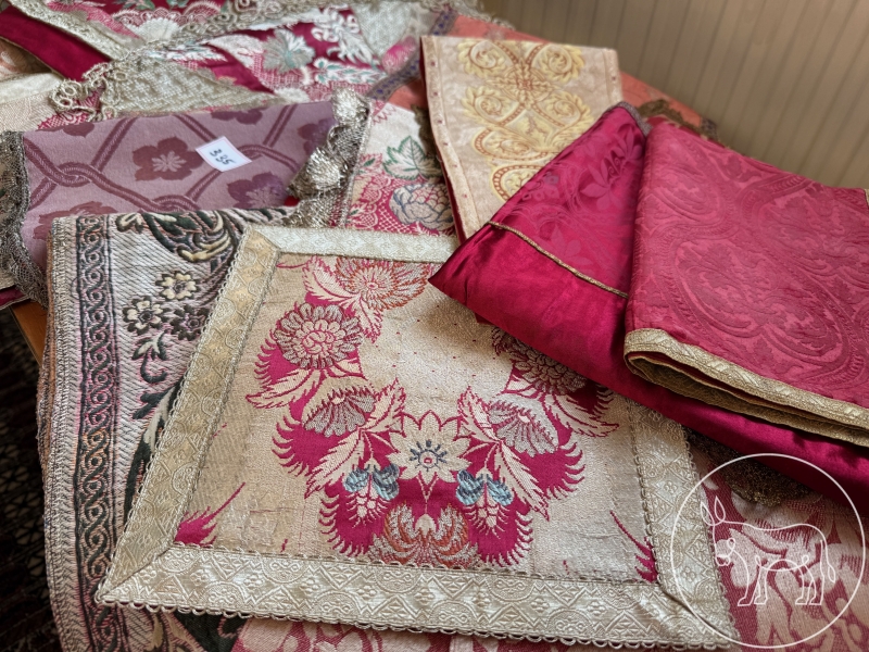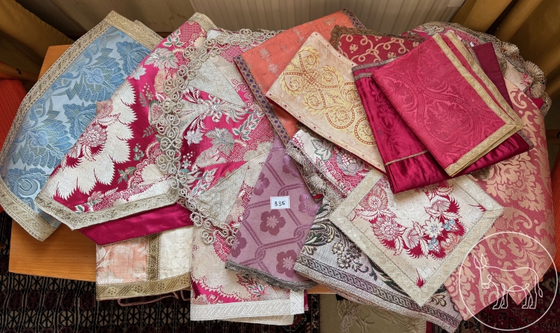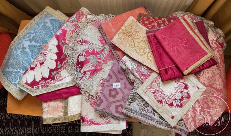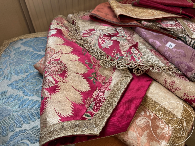 Aufwändig handgemachte dekorative Tischwäsche, hergestellt aus Borkatstoff in leuchtenden Farben mit silbernen Litzen / Silberborten, unterschiedlichste Formen, Größen und Farben.