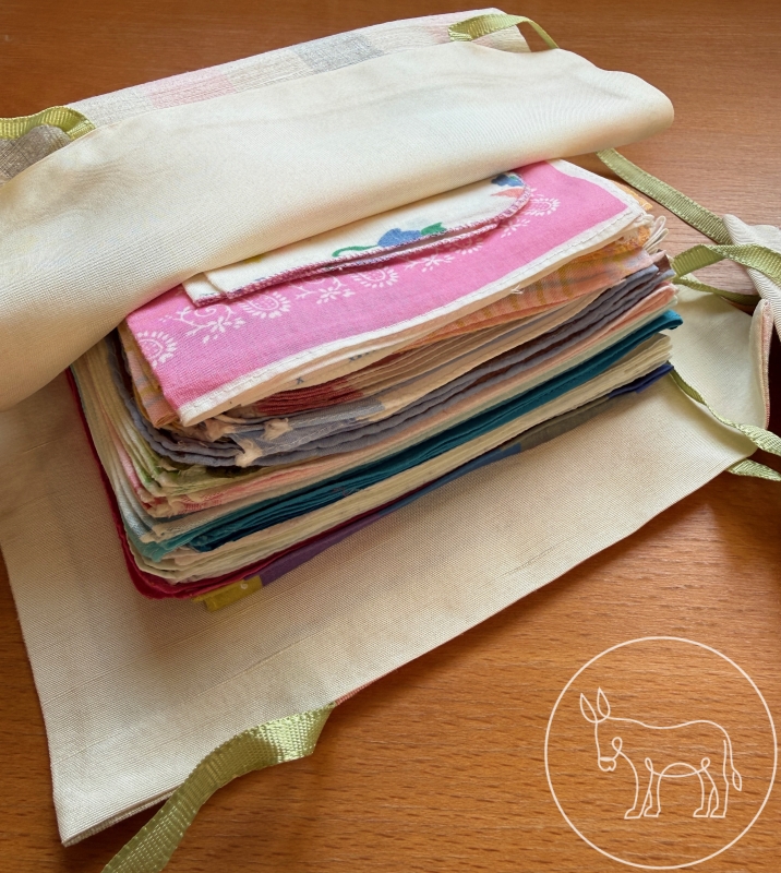 Handgefertigte Hüllen für Stofftaschentücher (damit sie im Schrank zusammengefasst werden können), inkl. Taschentüchern