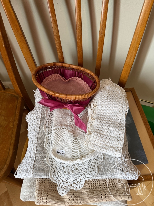 Tischdecke, Deckerl, Läufer, Brotkorb mit Deckerl.