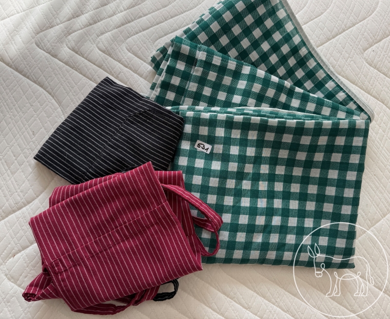 3 Biertisch-Decken und 2 Schürzen.