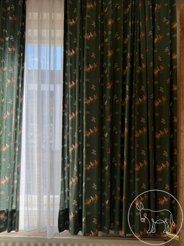 grüne Vorhänge mit Hühnern (Ostervorhänge), ca. 160cm Länge
