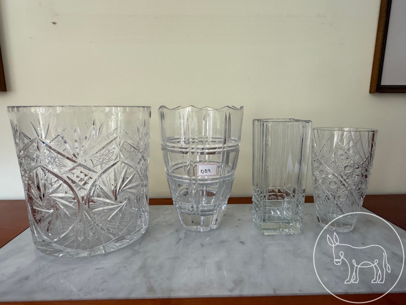 große Vase (H26cm D25cm). 4 Vasen in unterschiedlichen Größen und Formen.