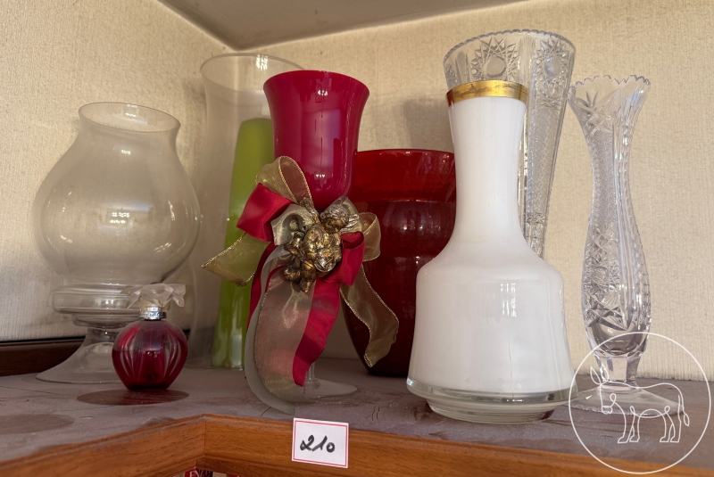 Glas- und Bleikristallvasen, durchsichtig und rot gefärbt