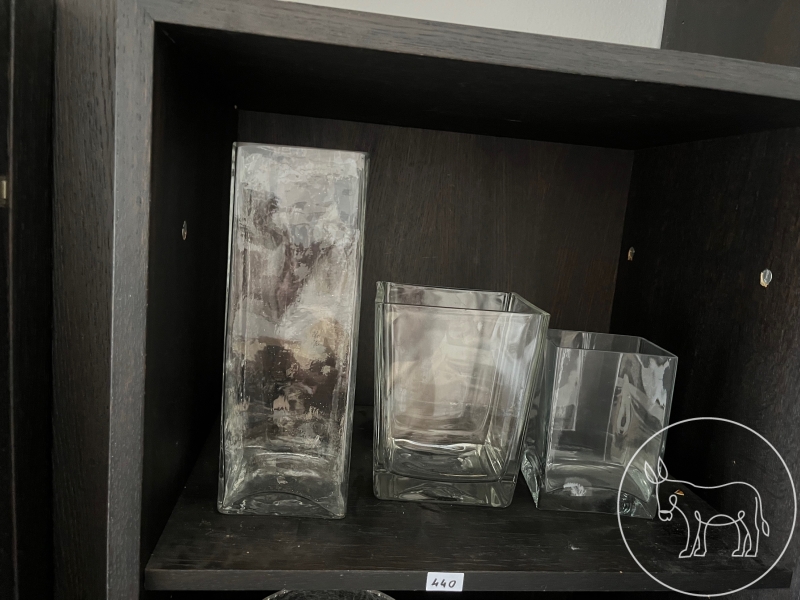 3 rechteckige Vasen in aufsteigenden Höhen und unterschiedlichen Volumengrößen