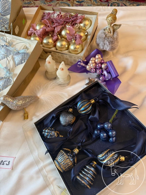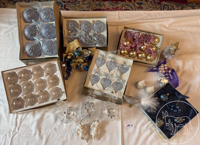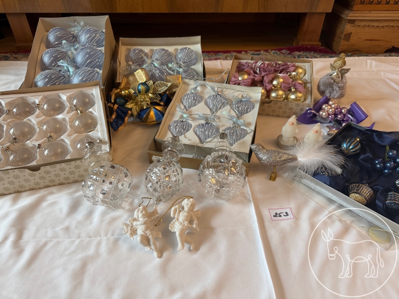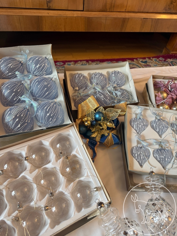 Weihnachtsdeko und Baumschmuck in den Farben eisblau, weiß, glas, blitzblau, dunkelblau etc.