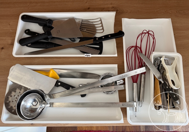 Schöpfer, Messer, Schäler, Teesieb, Beil, Schneebesen etc.