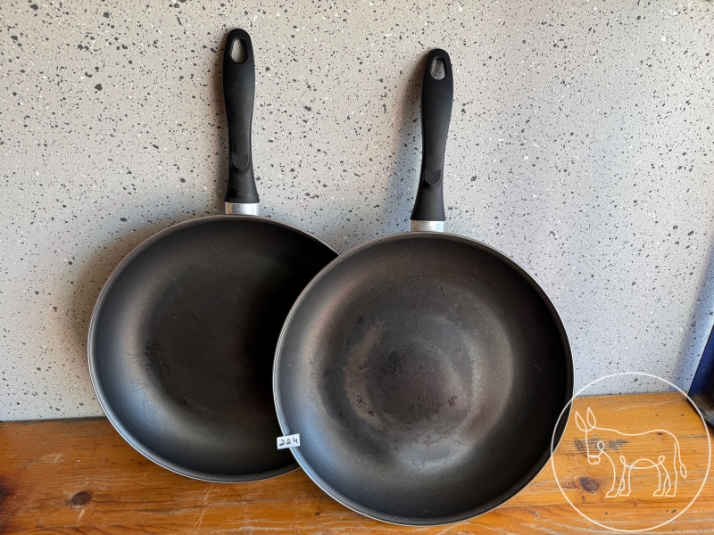 224 - 2 beschichtete Emailepfannen
