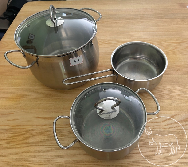2 Töpfe mit Deckel + Stieltopf. D23cm bzw. 2x D17cm