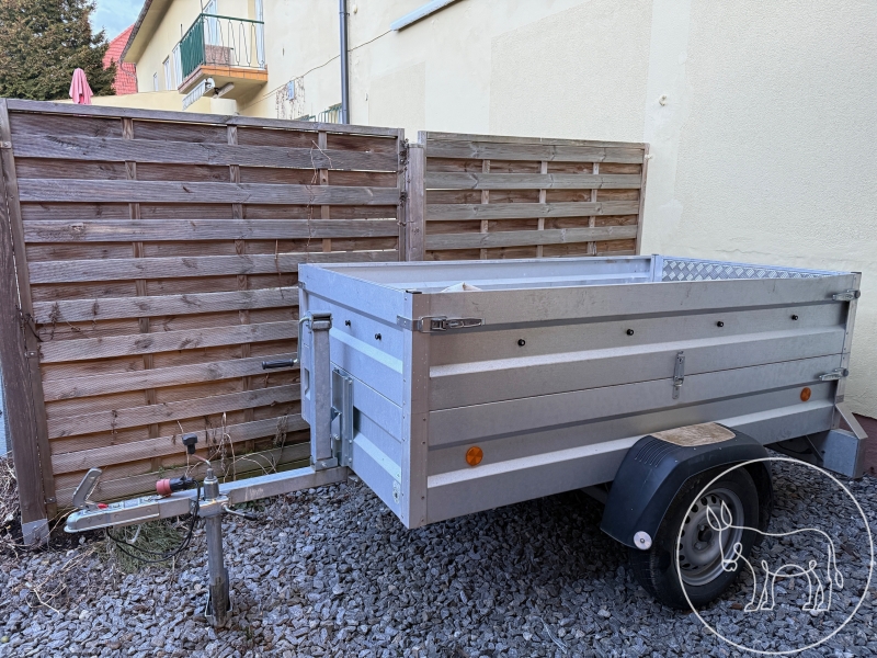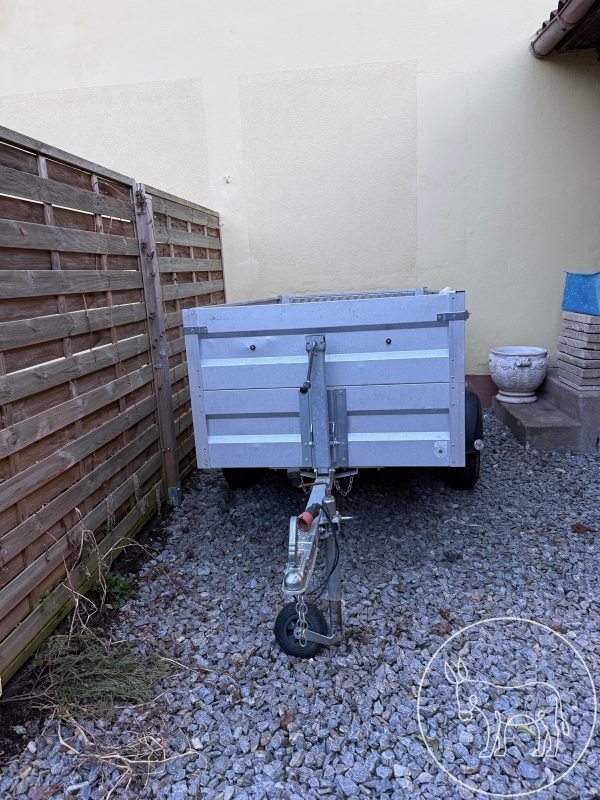 Zentralachsanhänger FOK 210U, Kipper, grau, Eigengewicht 142kg, zulässiges Gesamtgewicht 750kg, Höchstgeschwindigkeit 100kmh, Radstand 1955mm, Länge 3075mm, Breite 1580mm, Höhe 855mm, erstmals zugelassen 2017, abgemeldet seit 16.3.2026